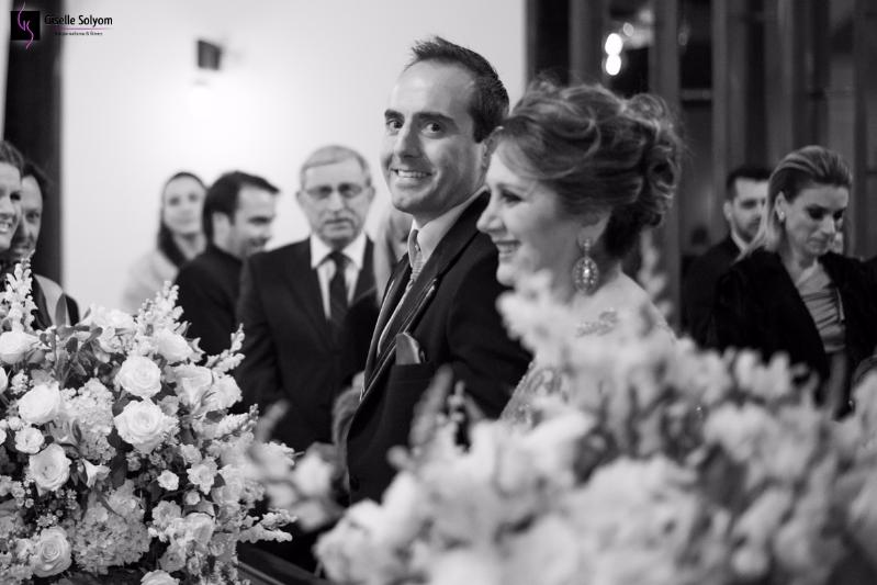 Mãe do noivo abotoa o seu colarinho, uma verdadeira demostração de carinho registrada pela fotógrafa Giselle Solyom naquele dia especial.