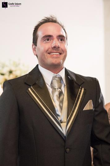 Noivo feliz aguarda o momento de ir à igreja em Curitiba - PR.