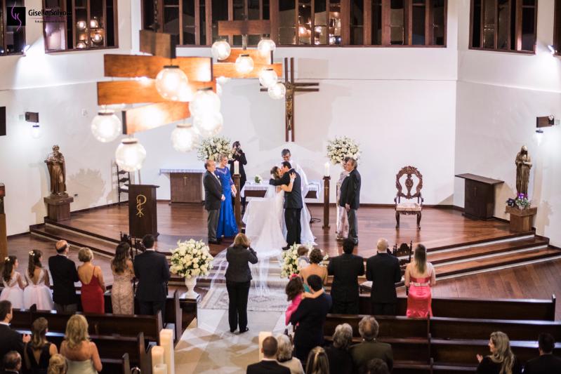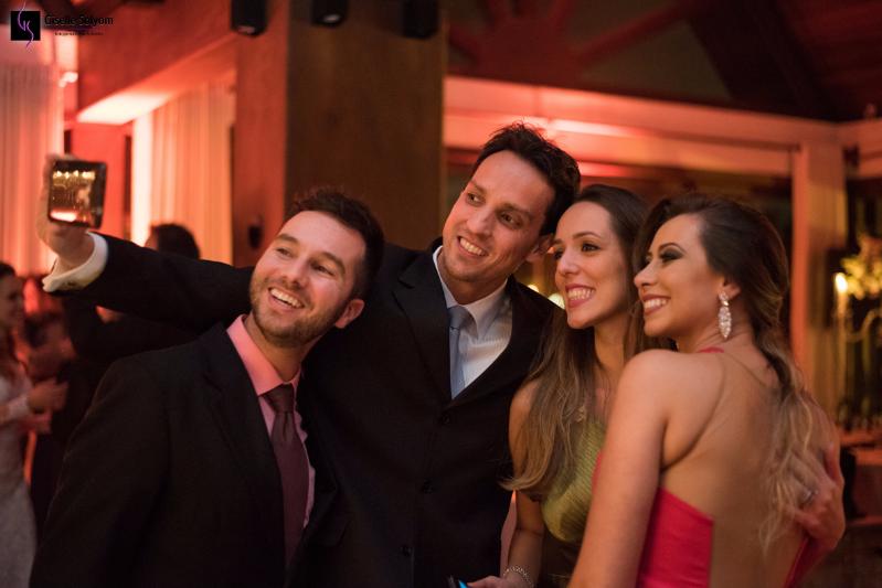 Convidades fazen selfie em Igreja Santo Agostinho, em Curitiba - PR