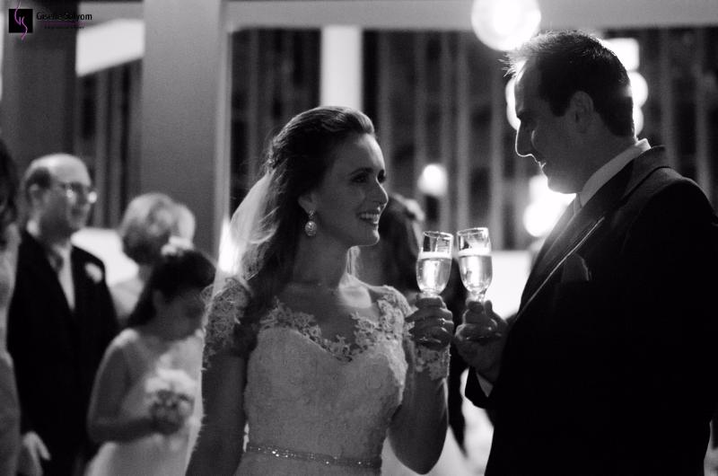 Vestido de noiva iluminado no hotel Bourbon Curitiba, com Giselle Solyom fotógrafa de Casamento e taças de champagne.